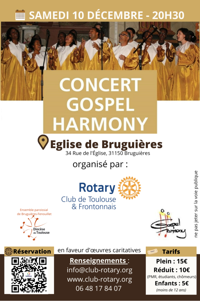 ❓Gospel Harmony Choir est un chœur Gospel toulousain qui perpétue l’espritdu Gospel traditionnel.Un concert de Gospel Harmony c’est 25 choristes et 5 musiciens sur scène qui enchanteront votre soirée. Dans une ambiance chaleureuse venezpartager l’émotion, le rythme, qui vous feront lever de votre chaise, taper des mains, danser et chanter avec eux.